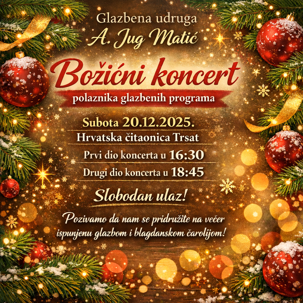 U subotu, 20. prosinca 2025., u prostoru Hrvatske čitaonice Trsat, održan je Božićni koncert polaznika Glazbene udruge A. Jug Matić.